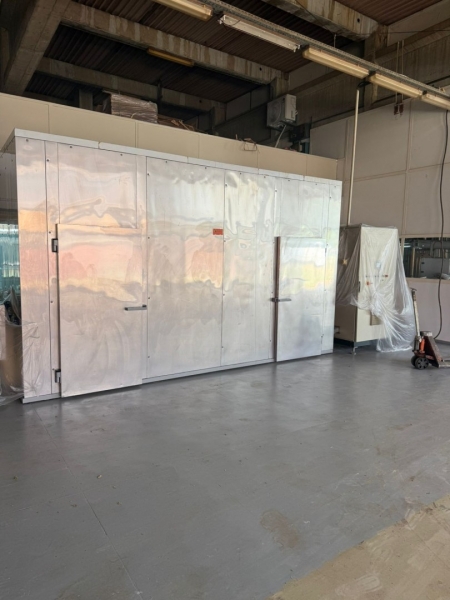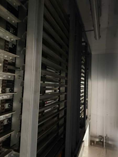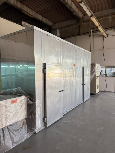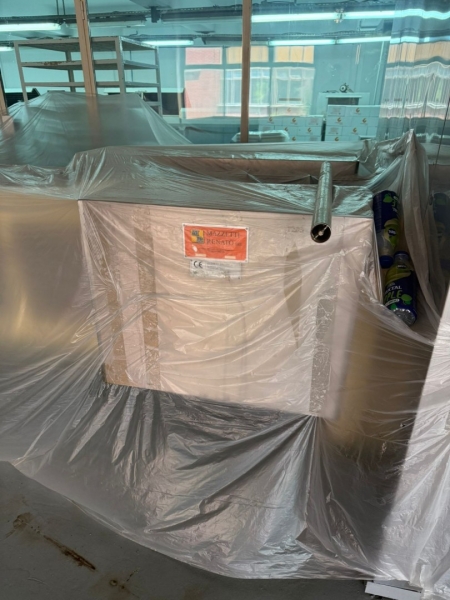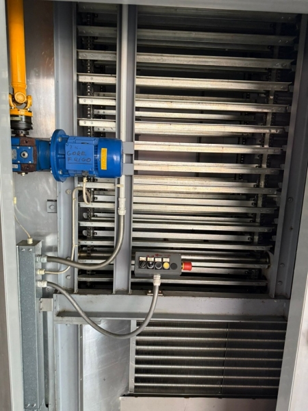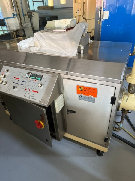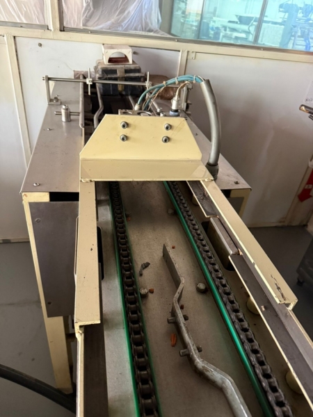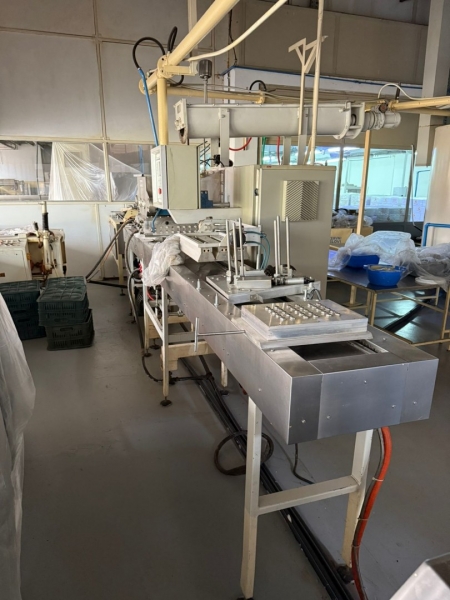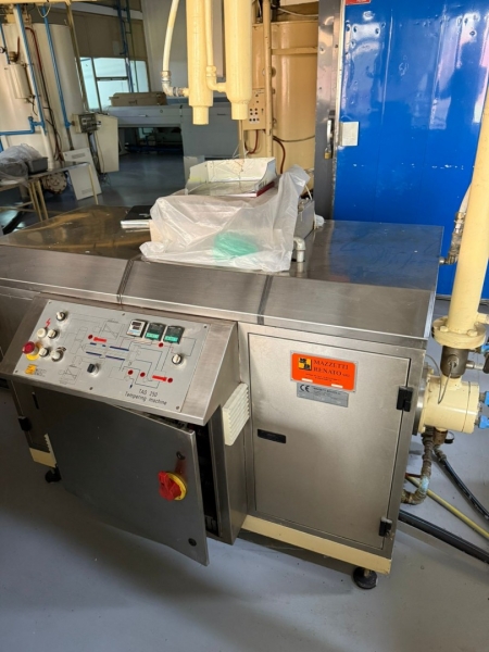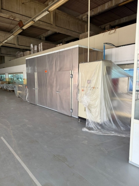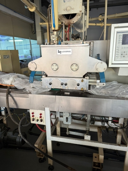 Linija za proizvodnju čokolade, ima tri celine: - Proizvođač "Martin Lloveras - Španija" 2001 g. 1. Mlin i prečistač za šećer i kakao, tip "Univerzal 200" 2. Višenamenki uređaj za temperiranje, doziranje i punjenje čokolade u kalupe tipa "Sima 360" 3 i 4. Sistem za mešanje komponenti voća i dr. sa čokoladom tip "M8-400" 5. Rezervoar za homogenizaciju čokoladne mase tip "AR 500", kapaciteta 500kg 6. Pumpa za transport čokoladne mase sa meračem protoka tip "BCH-40/075" 7. Dodatna pumpa za transport čokoladne mase tip "BCH-40/1" 8. Dvostruko obloženi cevovod za vezu prečistača "Univerzal 200" sa rezervoarom "AR 500" - Proizvođač "Mazzetti Renato - Italija" 2002 g. 9. Uređaj za temperiranje čokolade tip "TAO 250" 10. Rashladni tunel tip "27 S" za hlađenje čokoladne mase 11, 12 i 13. Vibraciona platforma, transportna traka 3.000 x 300mm i cevovodi - Proizvođač "Cabrellon - Italija" 2001 g. 14. Kalupi za oblikovanje čokolade 100gr - 350kom i 200gr - 350kom. |