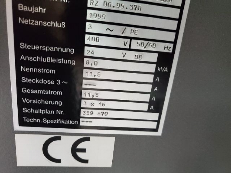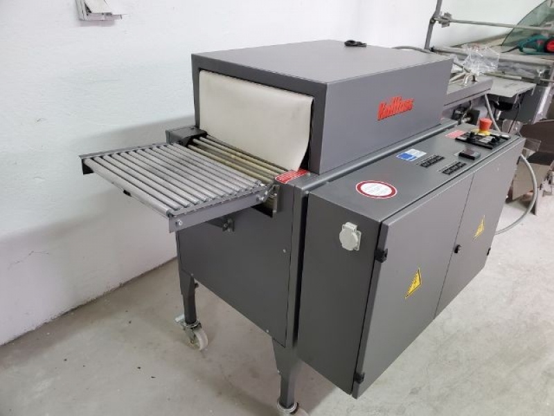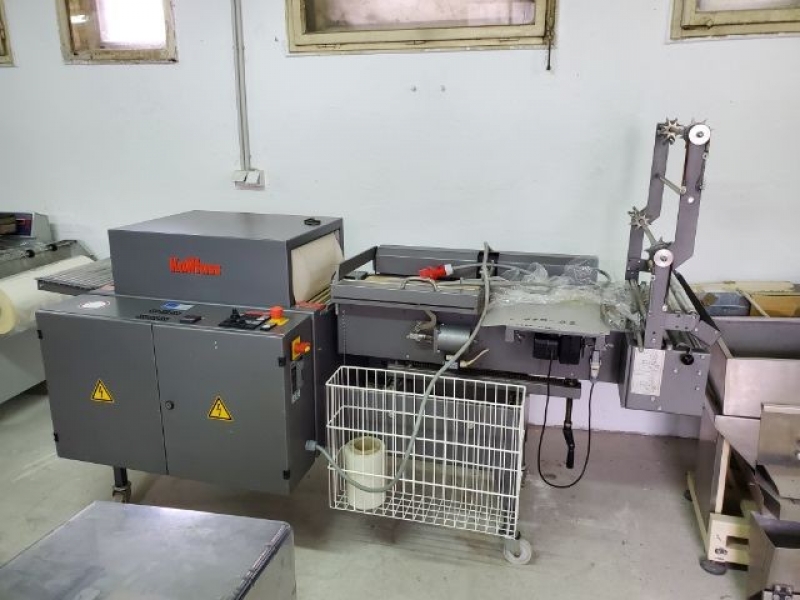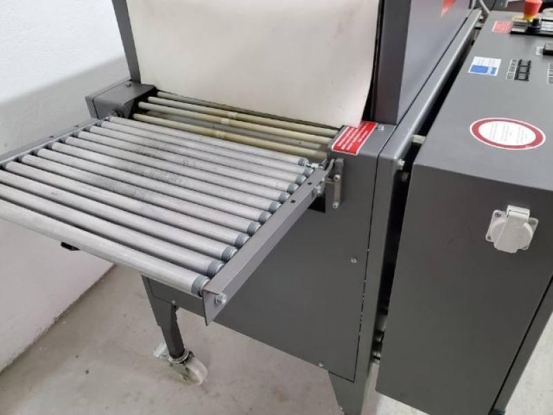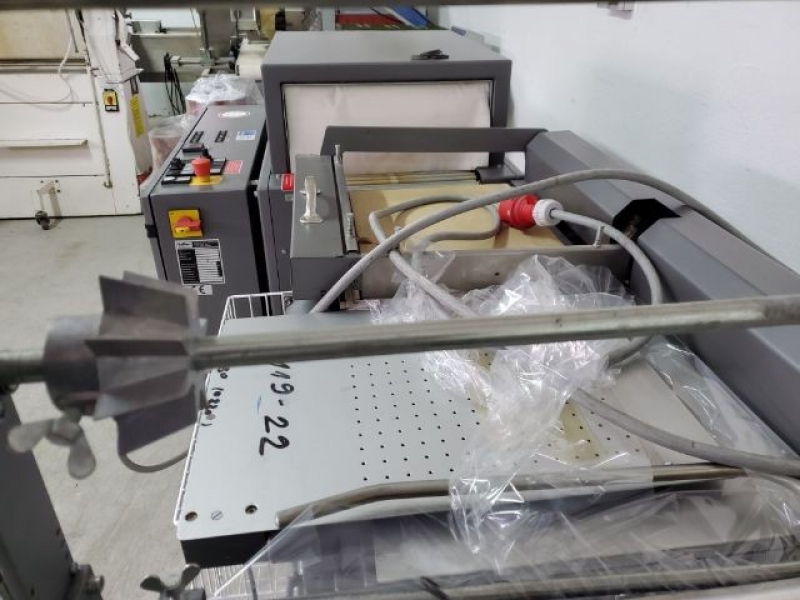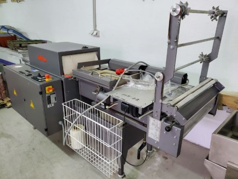 1999. Shrink wrapper Welding frame dimensions: 500 x 400 mm; Tunnel passage W/H: 400 x 200 mm; Length of heated tunnel: 700 mm; Foil max outer diameter: 300 mm; Foil max width: 500 mm; Working height: 800 – 950 mm; Conveyor width: 350 mm; Electrical connection: 400 V, 50 Hz; Rated capacity: 8 kVA; Dimensions: 2500 x 1000 x 1600 mm;