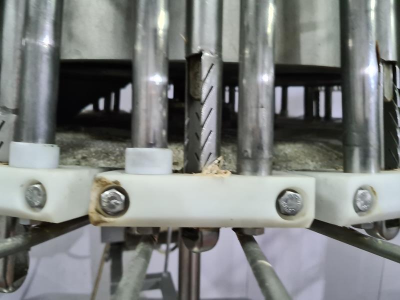 PATRINI cutting machine; Automatic machine for cutting the larynx or trachea with 20 seats; Dimensions: length: 1,650 mm; height: 3,200 mm; width: 1,550 mm |