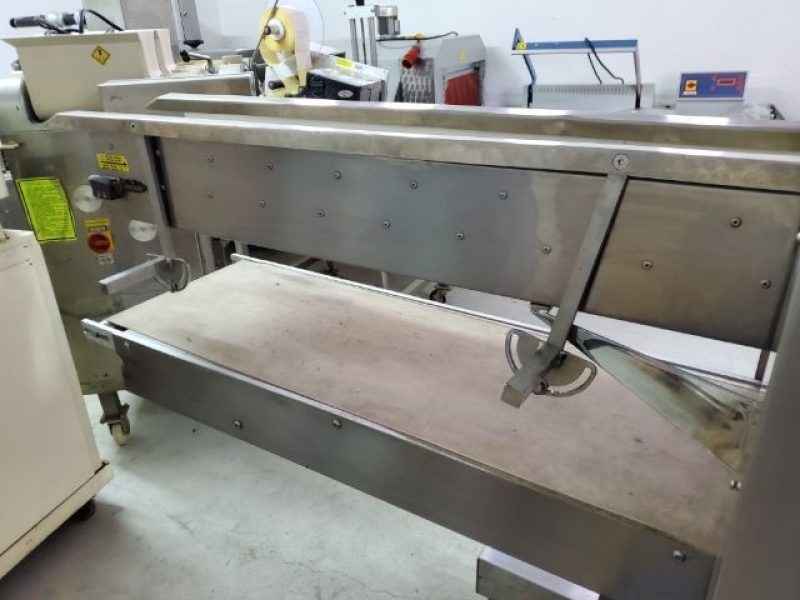 2000. Soft dought system Number of rows: 2; Capacity: 1800 – 3400 pcs/h; Product range: 95 – 250 g; Upper conveyor width: 200 mm; Low conveyor width: 350 mm; Dimensions: 1900 x 900 x 1700 mm; Electrical supply: 400 V, 50 Hz, 1.1 kW; |