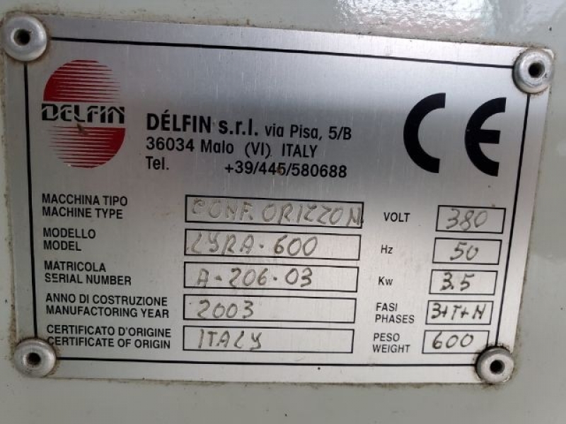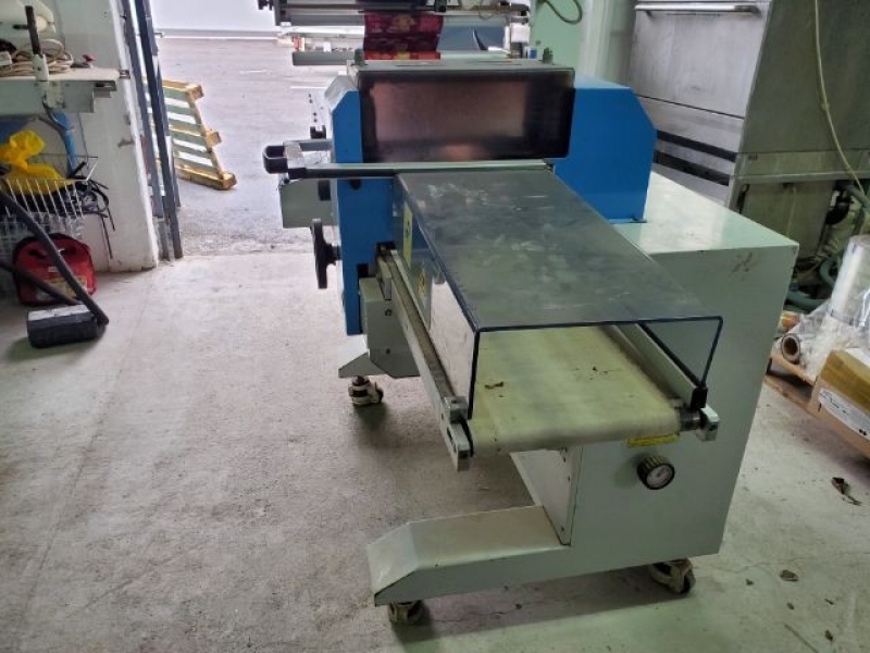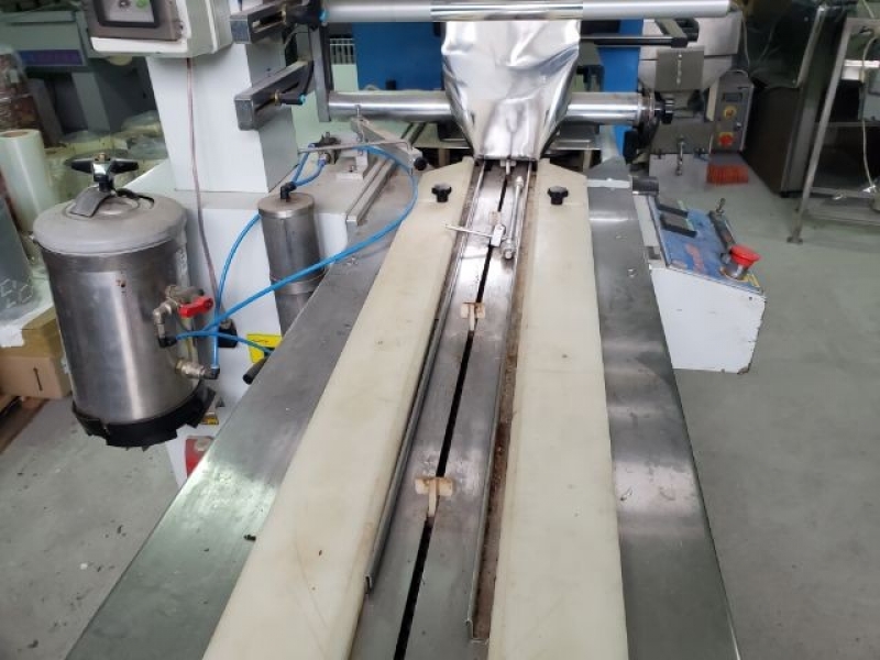 2003. flowrapper Power: 3.5 kW; Film reel width: 600 mm; Own weight: 600 kg; Dimensions: 3000 x 1000 x 1800 mm; Output conveyor width: 250 mm; Electrical supply: 380V, 50 Hz;