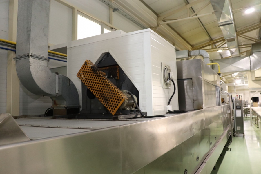 -Cooling tunnel OM 803; Length: 14200 mm; Belt conveyor width: 800 mm, Power: 2,2 kW + 7,5 kW; |