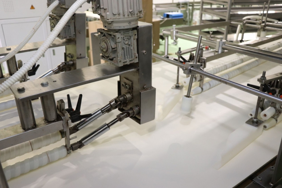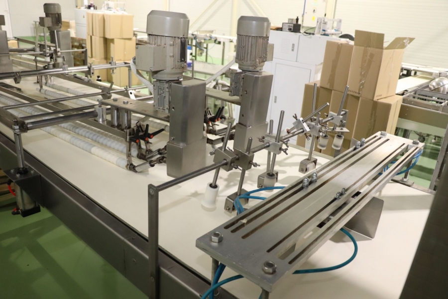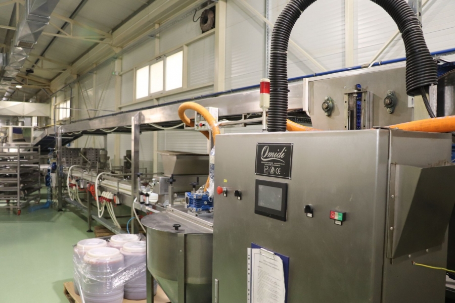 -Machine for filling and decoration with tank OM 802, Capacity: 2000 – 8000 pcs/h; Dimensions:1500 x 1200 x 1500 mm; Power 19,35 + 2,2 kW;