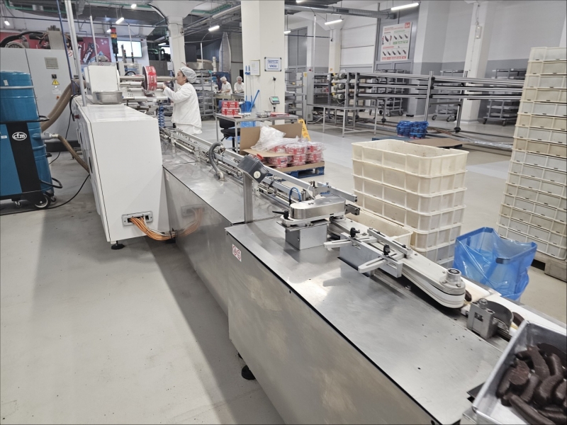 It is an automatic line for packaging bar products. The line has distribution system, primary packaging and secondary packaging in three types of boxes. The line collects and packs in carton boxes 700 pcs/min bar products. The primary packaging is SPS Italy, the secondary packaging is Cama Italy. Part for collecting and distributing the products to the packing line 1 and 2. Fully automated line for packaging bar products in cardboard boxes (shelf-ready), capacity 450 pcs/min. Line for packaging products in bags, capacity 250 pcs/min. Three level belt buffer for the line 1. Manufacturer of distribution system and horizontal flow wrapper machines - SPS Italy. Cartoning machine manufacturer - Cama Italy. Year of manufacture for all machines - 2006. The machines pack the products into boxes with lids or with cover. Cartoning machines have tools for different boxes of 5 pcs or 16 pcs or 32 pcs or 40 pcs. |