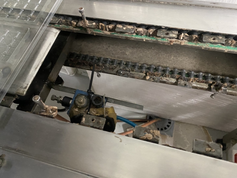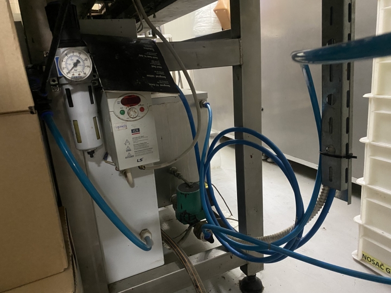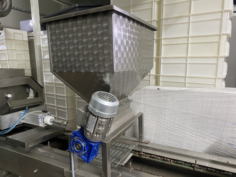 Dosage For mixing the chocolate that is dispensed into the mold. there is also a dosage for rice. Sensor for automatic closing of the chocolate inflow into the moulds. 500x70x180cm |