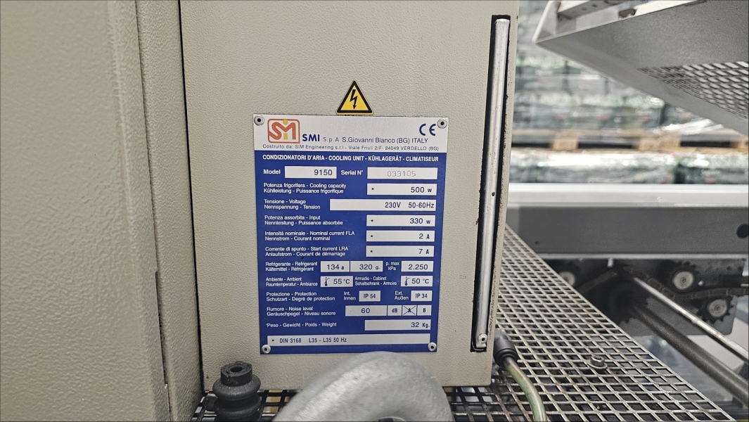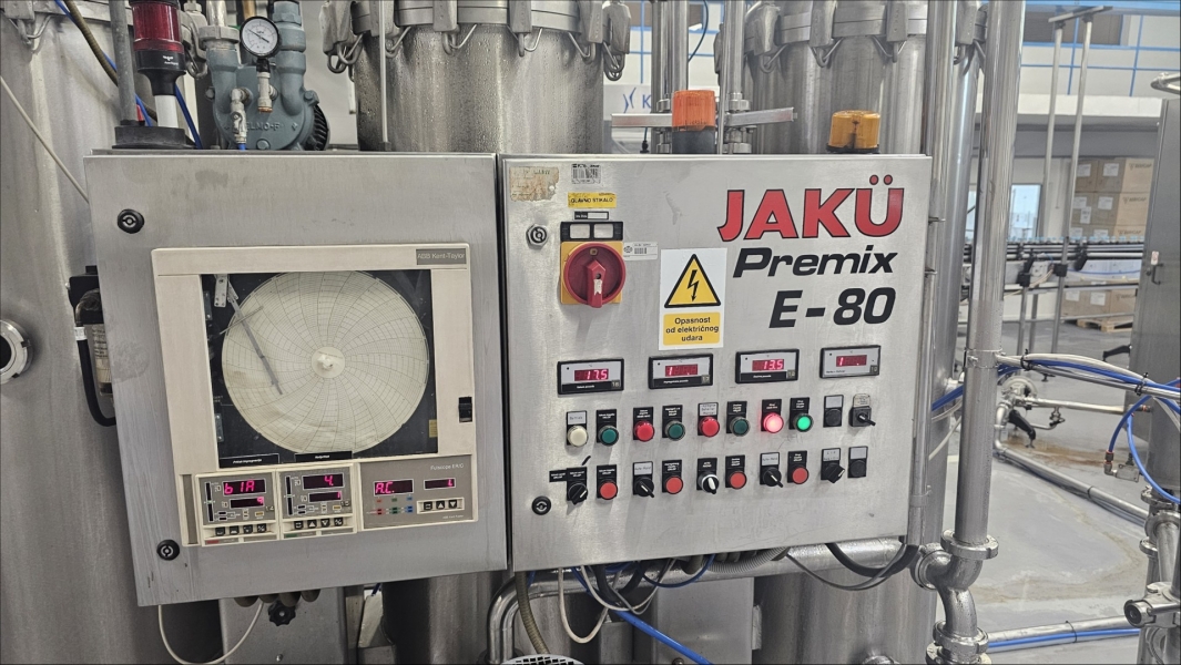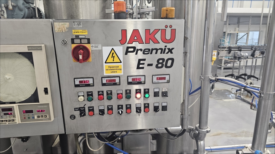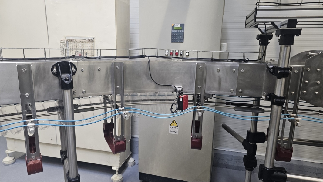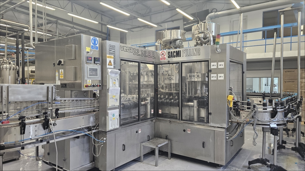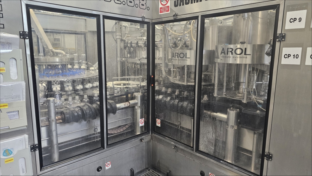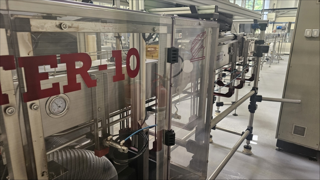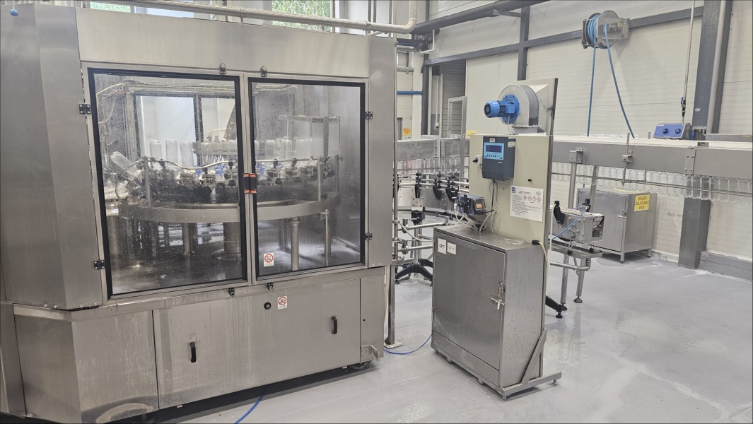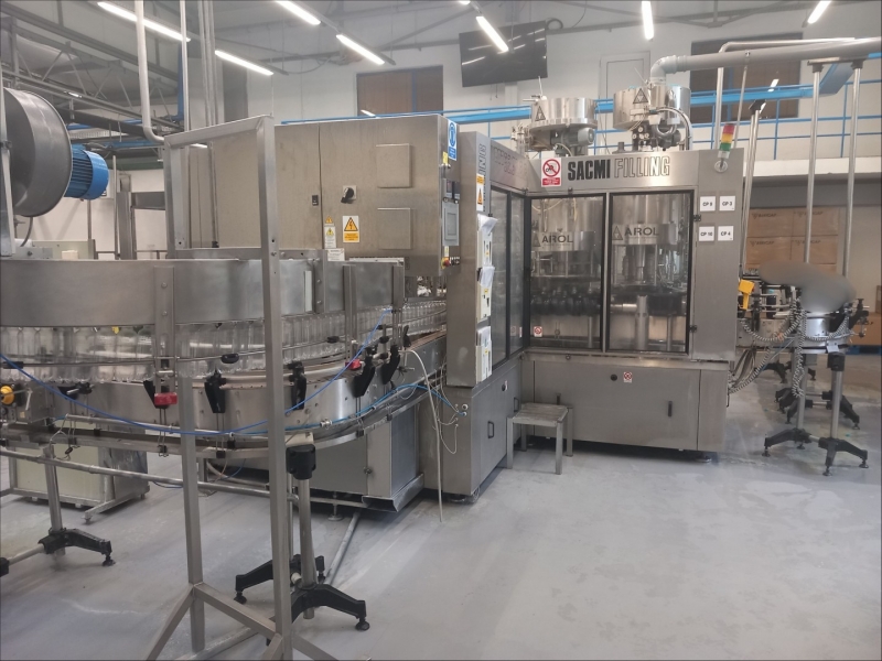 - Industrial tilt container loader (preform feeding system), manufacturer: H+E Maschinenbau, Type: HKG 1000-130°, 2018 - Preform elevator, manufacturer: M.T.A. S.p.A., Type: TAEevo TECH 051, 2018 - Blow molding machine for PET packaging, manufacturer: ABM Solutions, Type: ABM 5C-5002, 2023 - Bottle separation system and air conveyor, manufacturer: Posimat (Spain), Type: Unscrambler master 10, 2019 - Monoblock filling system, manufacturer: Sacmi Filling, Type: Vega 32.32.8.8., - Pneumatic cap or capsule transport and/or feeding system, manufacturer: Bertolaso (Italy), - Premix, manufacturer: JAKU/JB Michiels, Type: E-80, 1992 - Labeler (Pressure-sensitive labeling machine), manufacturer: Krones AG, Type: Contiroll K745-L64, 2006 - Bottle conveyor system, - Packaging - Shrink Tunnel, manufacturer: SMI S.p.A. Type: LSK 15T, 2003 - Built-in self-adhesive labeling unit, - Pallet packaging machine (rotary table - palletizer), manufacturer: Robopac S.p.A., Type: Masterplat plus PGS, 2023. |