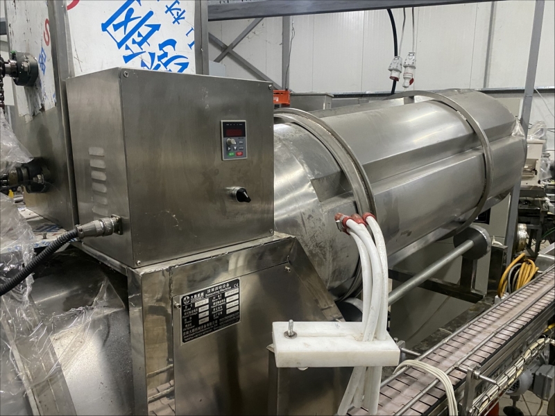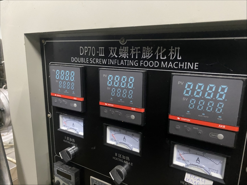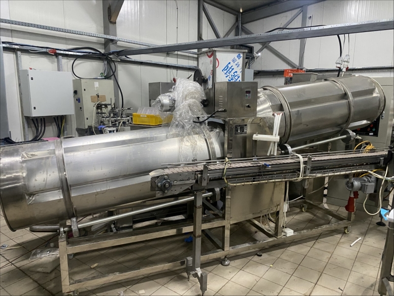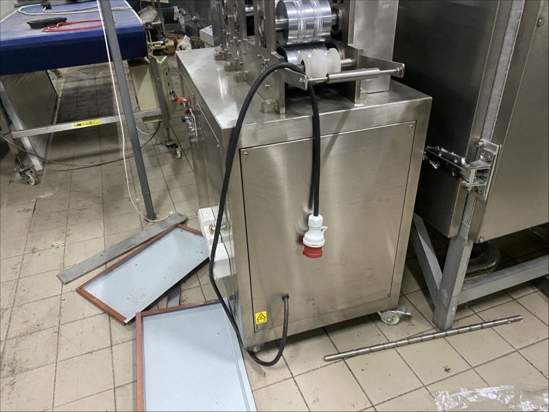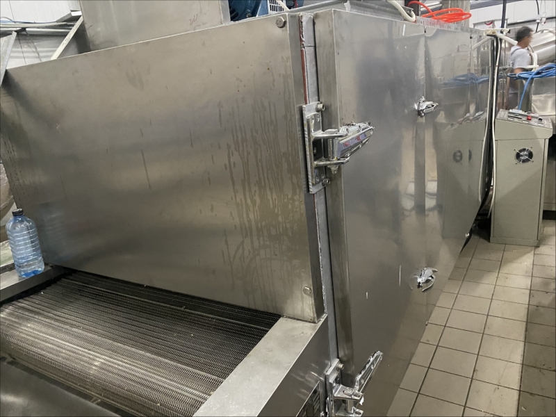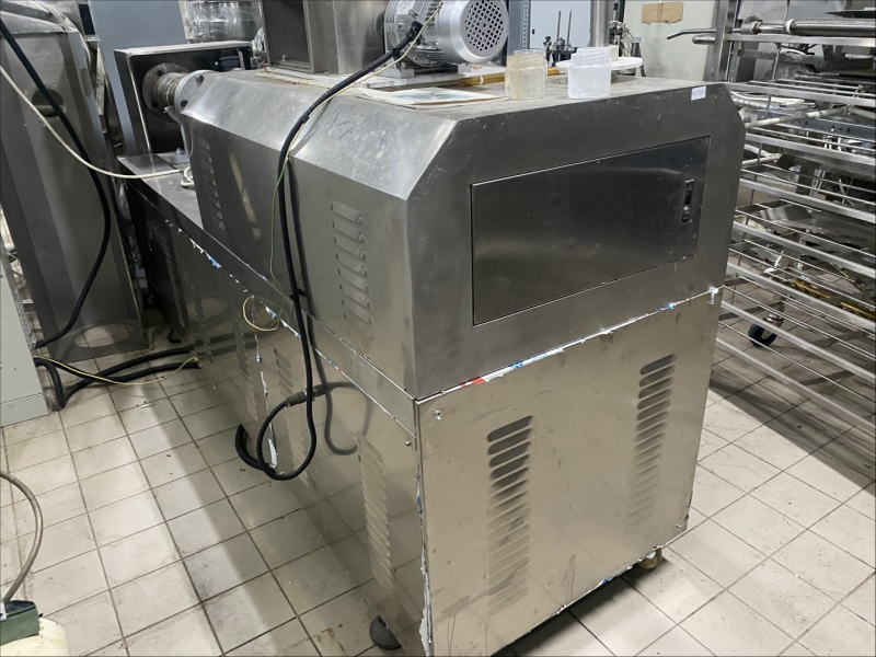 Machine for making flips - electric oven - dryer for flips 540x200x150cm, - extruder for flips 320x90x200cm, - drum for mixture and aroma 400x200x80cm, - command table 130x80x130cm, - control cabinet for extruder 70x50x180cm |