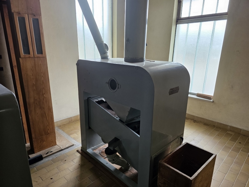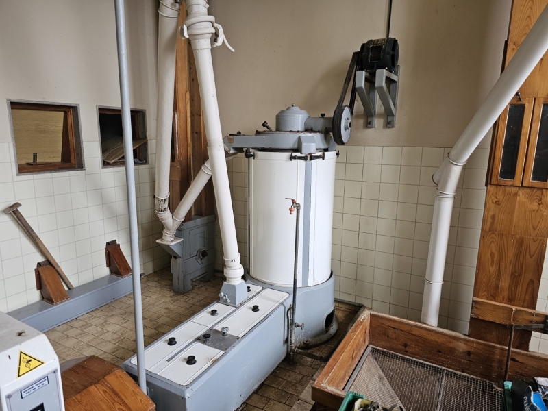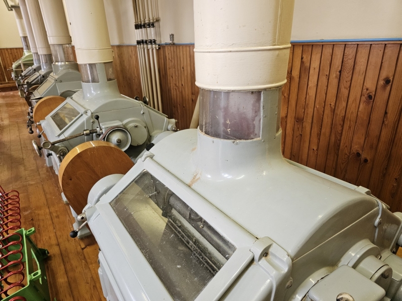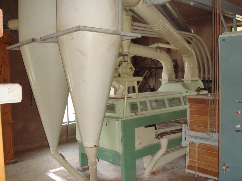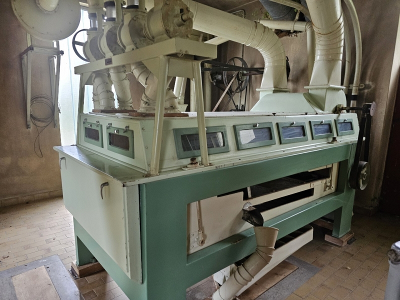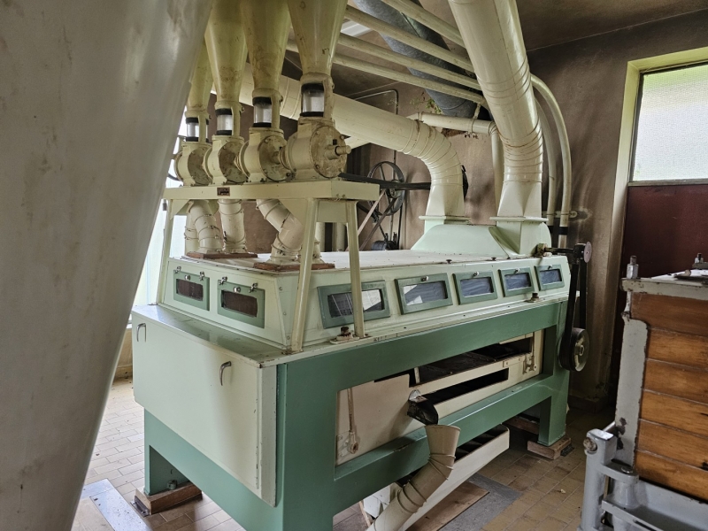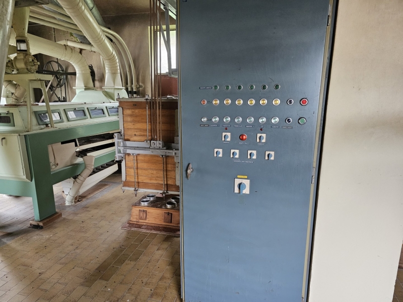 MILL Capacity 1000 kg/h of wheat + Capacity 1000 kg/h of corn Mill with 10 roller passes "SANGATI" Italy, roller width 60 cm. This is a grain milling plant. Flour type 500, type 850, bran, fine feed flour. (gray color) In the background is a rolling mill 2x2, roll width 80 cm, newer generation "BERGA" Italy. This is a plant for grinding corn, processing semolina for polenta. (green color) Under the machine is a channel with a drive system. Grain mill drive 1x50kv and corn mill drive 1x7kv. On the ground floor there is also a packing room with a sewing system, with a scale, a silo for bran 3t with extraction on a chain and a dispenser for bags, and a silo for flour 10t, with an aspirator and a dispenser for bags from 10 kg to 100 kg. On the ground floor, in a separate room, there is a washing machine (centrifugal with wheat moisture regulation) with a scale (new Libela Celje up to 500 kg) and an internal tank for small amounts of grain. In the background of the picture are the internal brick silos with the extractor and dispenser for the mill (below). The elevators are wooden, very high quality and can work for another 20 years. Straps and cups are like new. IN THE FLOOR: Centrifugal sieves 2x (a little dusty in the picture, but they are like new). Flawless pneumatic transfer of flour with newly installed cyclones for 20 years of operation guaranteed. The valves and cyclones above the screen are also regularly lubricated and in excellent condition. In the background are vibrating sieves, a planzistor (green) from a corn mill, a metal set, with a vibro cleaning system and a corn cyclone. On the left side of the picture you can see the upper parts of the silo (on the floor) for flour and bran, as well as the control cabinet for the upper drives of the mill. The transmission of all flour is pneumatic, (instead of auger) works flawlessly so that the mill can operate with minimal supervision, which is very important. This is perfected with experience. There are also the Sieves and Cyclonic Corn Mill Cleaners mentioned earlier. Close-up of silo with cyclone cleaners and overhead control box. A separate room on the upper floor, at the entrance are vibration and centrifugal cleaning equipment with magnets. There are also 2x cyclone cleaners and elevators from the floor (connection between the external silos, the trough bed, the cleaning device and the internal silos). External silos 60T with suction trough length 10m x 2m, which allows the vehicle to be turned over once and driven away. A better system than vacuuming (because the vehicle has to wait to be vacuumed). This system is like new, it worked for a couple of years, everything was newly installed, I personally completed all the key elements very precisely and I guarantee the flawless operation of the whole mill for many years! There is also an external analog scale up to 1000 kg as new (Libela Celje), and in addition we also have a renovated bridge scale for vehicles up to 25 T in stock for assembly. |