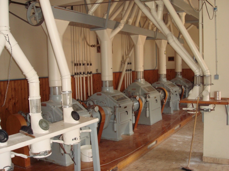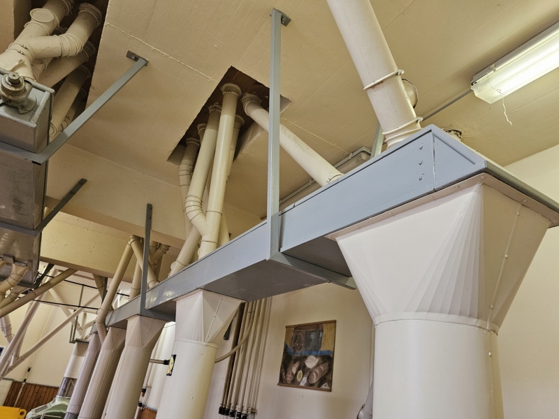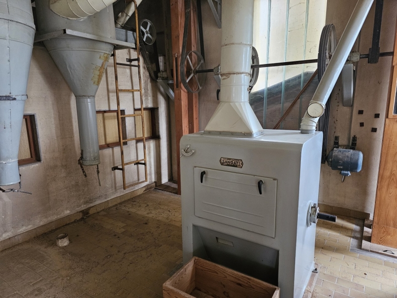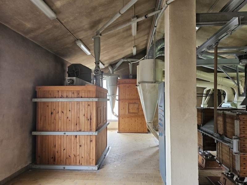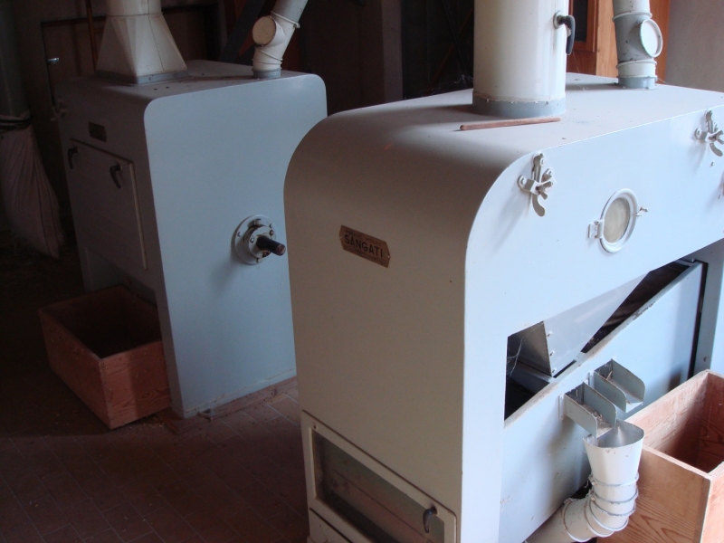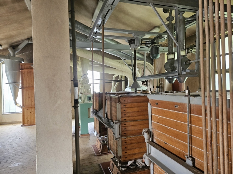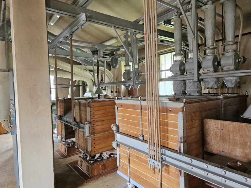 MILL Capacity 1000 kg/h of wheat + Capacity 1000 kg/h of corn Mill with 10 roller passes "SANGATI" Italy, roller width 60 cm. This is a grain milling plant. Flour type 500, type 850, bran, fine feed flour. (gray color) In the background is a rolling mill 2x2, roll width 80 cm, newer generation "BERGA" Italy. This is a plant for grinding corn, processing semolina for polenta. (green color) Under the machine is a channel with a drive system. Grain mill drive 1x50kv and corn mill drive 1x7kv. On the ground floor there is also a packing room with a sewing system, with a scale, a silo for bran 3t with extraction on a chain and a dispenser for bags, and a silo for flour 10t, with an aspirator and a dispenser for bags from 10 kg to 100 kg. On the ground floor, in a separate room, there is a washing machine (centrifugal with wheat moisture regulation) with a scale (new Libela Celje up to 500 kg) and an internal tank for small amounts of grain. In the background of the picture are the internal brick silos with the extractor and dispenser for the mill (below). The elevators are wooden, very high quality and can work for another 20 years. Straps and cups are like new. IN THE FLOOR: Centrifugal sieves 2x (a little dusty in the picture, but they are like new). Flawless pneumatic transfer of flour with newly installed cyclones for 20 years of operation guaranteed. The valves and cyclones above the screen are also regularly lubricated and in excellent condition. In the background are vibrating sieves, a planzistor (green) from a corn mill, a metal set, with a vibro cleaning system and a corn cyclone. On the left side of the picture you can see the upper parts of the silo (on the floor) for flour and bran, as well as the control cabinet for the upper drives of the mill. The transmission of all flour is pneumatic, (instead of auger) works flawlessly so that the mill can operate with minimal supervision, which is very important. This is perfected with experience. There are also the Sieves and Cyclonic Corn Mill Cleaners mentioned earlier. Close-up of silo with cyclone cleaners and overhead control box. A separate room on the upper floor, at the entrance are vibration and centrifugal cleaning equipment with magnets. There are also 2x cyclone cleaners and elevators from the floor (connection between the external silos, the trough bed, the cleaning device and the internal silos). External silos 60T with suction trough length 10m x 2m, which allows the vehicle to be turned over once and driven away. A better system than vacuuming (because the vehicle has to wait to be vacuumed). This system is like new, it worked for a couple of years, everything was newly installed, I personally completed all the key elements very precisely and I guarantee the flawless operation of the whole mill for many years! There is also an external analog scale up to 1000 kg as new (Libela Celje), and in addition we also have a renovated bridge scale for vehicles up to 25 T in stock for assembly. |