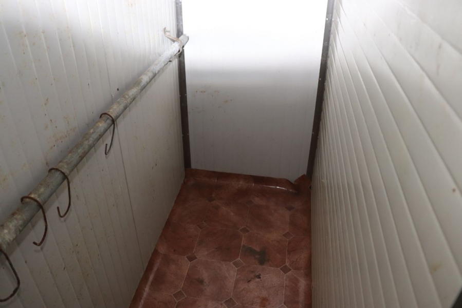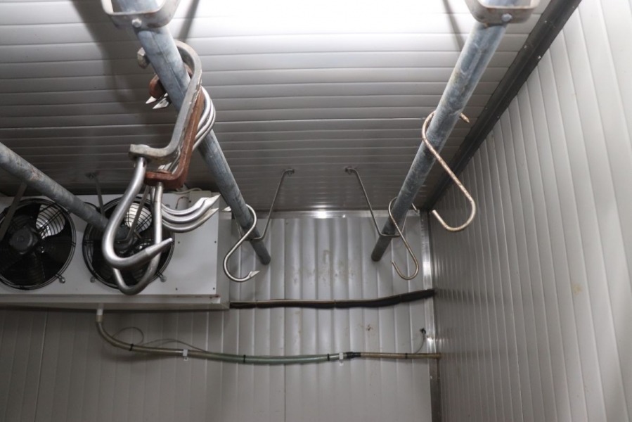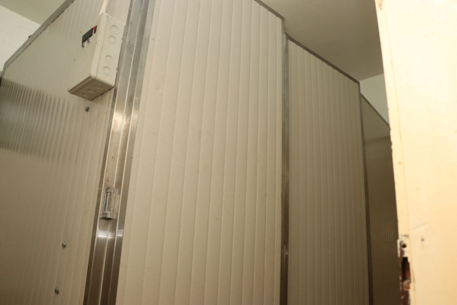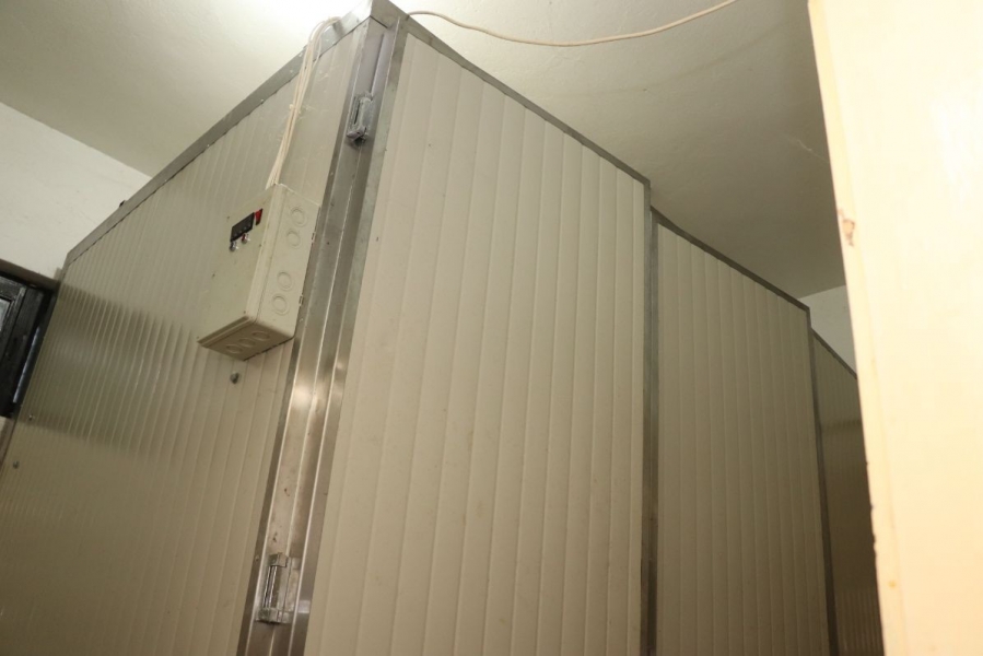 Cooling assembly-disassembly chamber, digital, made of self-supporting insulating panels of 50 mm thick plates, plastic-coated on both sides, connected with stainless steel profiles. The chamber has three entrance doors made of panel panels lined with stainless steel with security locks. Cooling temperature of 4.8 ° C. |