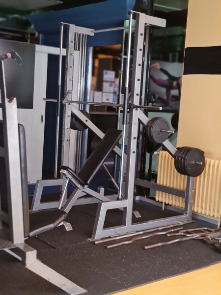 1. Masina za zgibove - SMART LINE jimsa.S.220 dipping machine 2. Vratilo sa ogledalom 3. Sprava za ledja 4. Klupa za trbusnjake 4x 5. SMART LINE jimsa, S.080 Lower back 6. SPORT ART 7100 2x 7. WOODWAY traka 8. SPORT ART 2100 (masina veslanje-sedece) 9. SPORT ART 5100 (bicikla sedeca) 3x 10. SPORT ART 5200 (bicikla) 4x 11. VISION FITNESS (steper) 12. SMART LINE jimsa S.170 Total Hip 13. SMART LINE jimsa S.130 Adductor 14. SMART LINE jimsa S.140 Adductor 15. SMART LINE jimsa S.120 Leg Press 16. SMART LINE jimsa S.010/1 Incline Chect press 17. SMART LINE jimsa S.030 Butterfly 18. SMART LINE jimsa Pek Dek 19. SMART LINE jimsa S.070 Arm Extension 20. SMART LINE jimsa S.110 Leg Curl 21. SMART LINE jimsa S.100 Leg Extension 22. SMART LINE jimsa S.060 Arm Curl 23. SMART LINE jimsa S.090 Abdominal Machine 24. SMART LINE jimsa S.240 Rotary Torso 25. SPORT ART 8300 (steper) 3x 26. SMART LINE S.020 Shoulder Press 27. SMART LINE Kat za ledja (srednje veslanje) 28. ERGO Step 560 2x 29. STEX traka 8020T 3x 30. Smit Masina 2x 31. Klupa za rame 32. Klupa sa podesavanjem 2x 33. Ravna klupa 2x 34. Lat Masina 4 u 1 35. Bench pres klupa 36. Leg Press (visoka) 37. Biceps klupa (skot klupa) 38. Sipka OLIMP 2x 39. Sipka 16 kg 2x 40. Bucice od 2 kg do 40 kg 41. Okrugli tegovi od 1.5 kg do 20 kg 42. Sipke male 7 kg 4x 43. Gumeni sportski pod (zuta-plava) 100m2 |