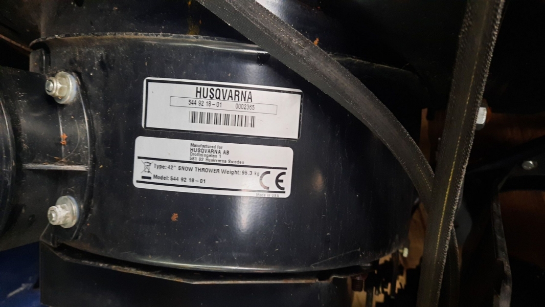 Tip: 42" Grtalica za sneg; Serijski broj: 0002365; Dimenzije: 1160 x 850 x 660 mm; Težina: 95,3 kg; Opis: Odgovara ramovima traktora u stilu Tex (2006. i noviji modeli), Dva nazubljena ulazna puža prečnika 30 cm uvlače sneg, a zatim impelor velike brzine pokreće sneg kroz polivalentni otvor, Električno podizanje pomoću jednog dugmeta, Rukovalac može da podesi otvor za pražnjenje i kontrolni korak deflektora i ima rotaciju od 180 stepeni od sedišta traktora, nikada nije korišćen |